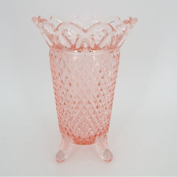 Vintage Imperial Glass Pink Diamond Point Lace Edge Vase