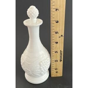 Vintage Imperial Glass White Milk Glass Cruet With Stopper Grape Vine Pattern. Very good pre-owned condition. No chips or cracks. Weighs 7oz. Measurements in photos.