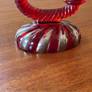 Vintage Imperial Glass Double CandleStick Holder Red and Silver