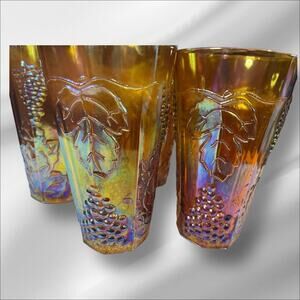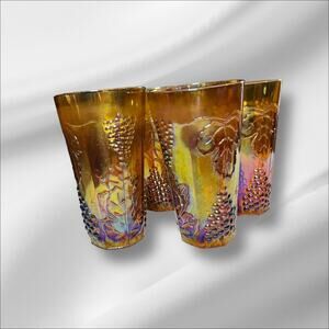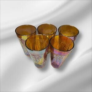 Vintage Imperial Indiana Glass Amber Iridescent Set of 5 Tumblers