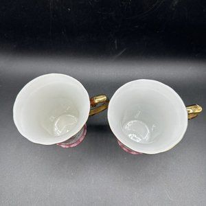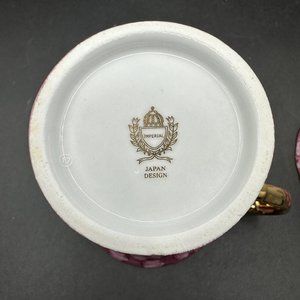 Vintage Imperial Japan Floral Design Coffee Tea Cups Mugs Pink Roses Gold Handle