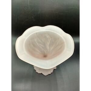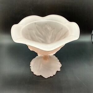 Vintage Imperial by Lenox Pink Satin Frosted Glass Leaf Pedestal Candy Dish | Marked