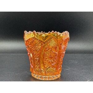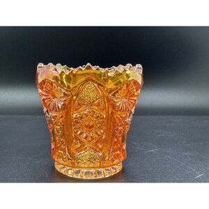 Vintage Imperial Marigold Carnival Glass Toothpick Holder Hobstar & Arches