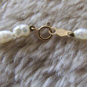 Vintage hand strung freshwater pearl, genuine coral and 14kt gold beaded necklace with 14kt gold clasp. Tagged IWI 14kt. Necklace measures 18.5" long. It does have a few pieces of the string poking out at the back of the neckline. ##C1