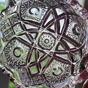 Beautiful curved sawtooth edges and gorgeous cuts in the glass make this so pretty when the light reflects off of it.
