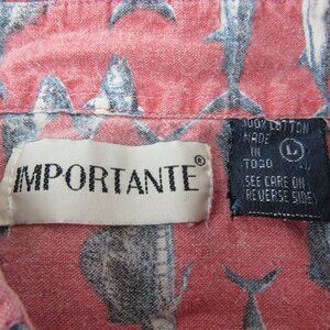 Vintage Importante Fish Design Long Sleeve Button Down Collar Shirt Size L