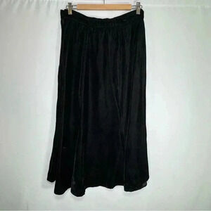 Vintage In Group Midi Black Velvet Skirt Elastic Waist Whimsigoth Made in USA 14