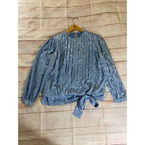 Vintage In The Mood Women's Blue Long Sleeve Pleated Blouse - 18