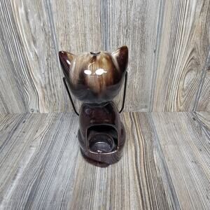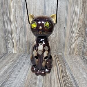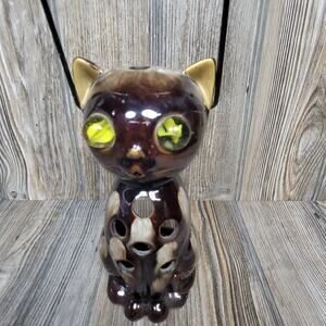 Vintage Inarco Cat Candle Holder Lantern, Marble Eyes, Ceramic Kitten Figurine