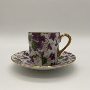 Vintage Inarco Demitasse Cup And Saucer Purple Violets E-563/D.
