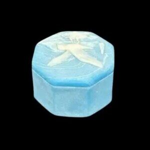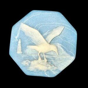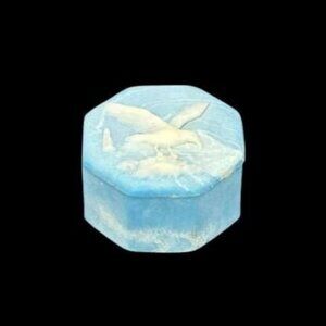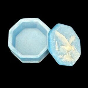 Vintage Incolay Stone Octagonal Carved Nautical Seagull Lighthouse Trinket Box