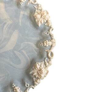 Vintage Incolay Stone USA Powder Blue Dish Tray Platter White Grapes Trim