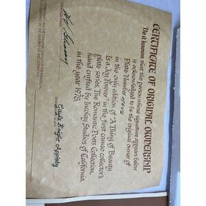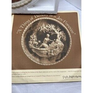 This vintage collector plate from Incolay Studios of California features a beautiful sculpture titled "A Thing of Beauty" depicting the Romantic Poets. The plate is made of high-quality Incolay material and has a rustic pattern with multicolor accents.