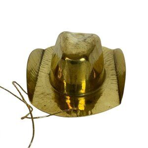 Vintage India Exotics Brass Cowboy Hat & Saddle Christmas Ornaments Hand Made