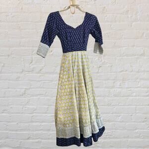 Vintage Indian Block Print Cotton Maxi Dress Cottagecore Prairie, Mint Condition