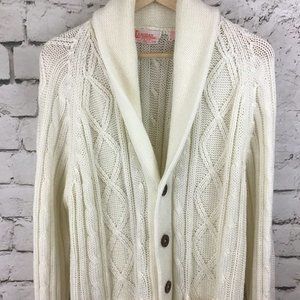 Vintage Indian Brand Sportswear Womens Sz L Sweater Cable Knit Cardigan W/Belt.