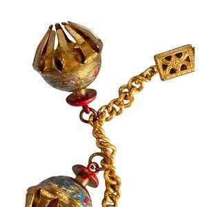 Vintage Indian Elephant Claw Charm Bracelet Gilt & Enamel Statement 6 1/2"