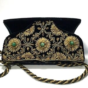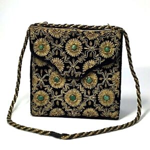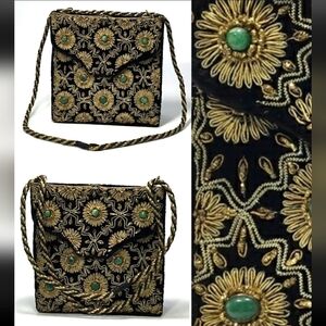 Vintage Indian Handmade Jades Embellished With Metallic Gold Details Purse