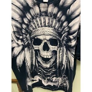 Vintage Indian Skull T Shirt Big Chief Black All Over Print Native America 2XL