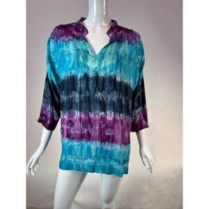 Vintage Indian Tropical Fashion Tie-Dye Tunic Top One Size 100% Rayon Embroidere