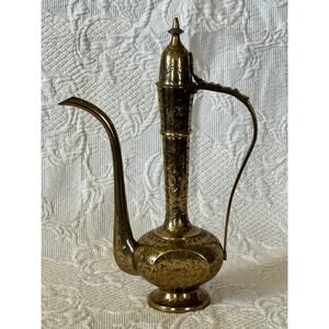 Vintage Indian, Turkish Brass Etched Brass Teapot or Coffee Pot