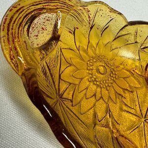 Vintage Indiana Carnival Glass Candy Dish with Gold Sunflower Design