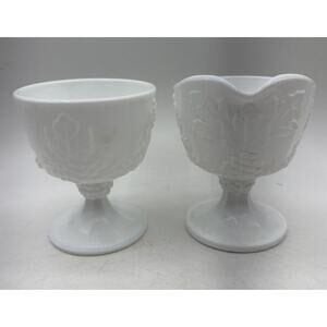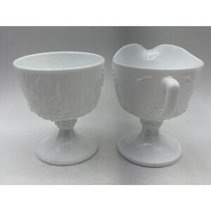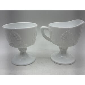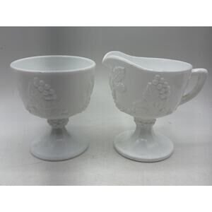 Vintage Indiana Colony Harvest Grape Pattern Milk Glass Creamer and Sugar Bowl