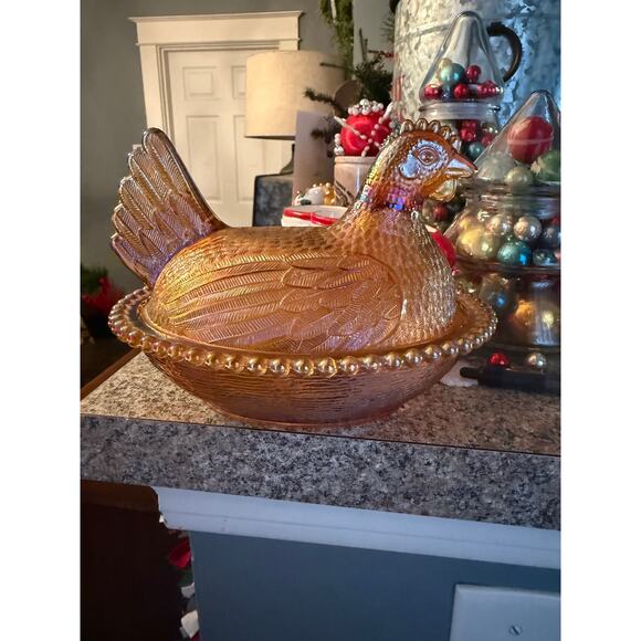 Vintage Indiana Glass Amber Carnival Glass Hen on Nest