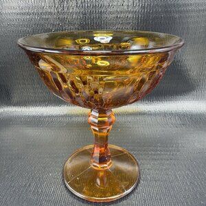 Vintage Indiana Glass Amber Tall Compote Pedestal Bowl Dish 6.5inch Cup Goblet