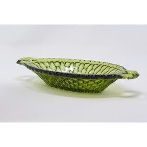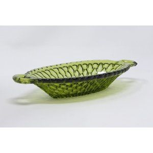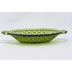Vintage Indiana Glass Avocado Green Honeycomb Oval 2 Handled Relish Dish Bowl Tray