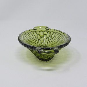Vintage Indiana Glass Avocado Green Honeycomb Oval 2 Handled Relish Dish Bowl Tr