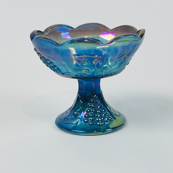 Vintage Indiana Glass Blue Harvest Grape Carnival Glass Candle Holder