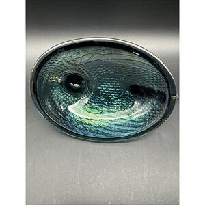 Vintage Indiana Glass Blue Iridescent UV Glow Carnival Hen On Nest EUC