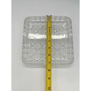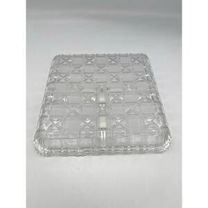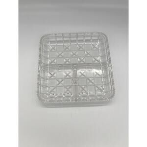 Vintage Indiana Glass Clear Block & Stars 3 Part Square Relish Dish 7”