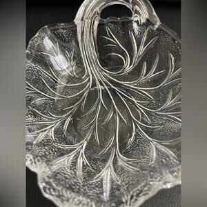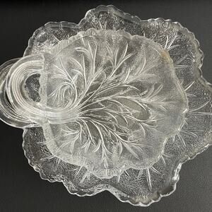 Vintage Indiana Glass Clear Pebble Leaf Nappy Bowl w/ Handle EUC