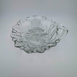 Vintage Indiana Glass Clear Wild Rose 4 1/2" Handled Berry Bowl Retro Kitchen