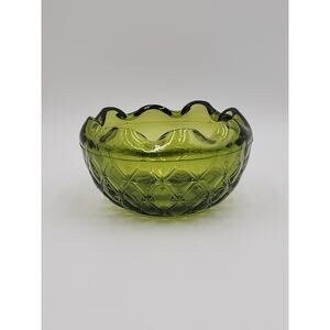 Vintage Indiana Glass Co Avocado Green Quilted Diamond Ruffled Bowl Glass