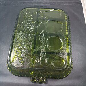 Vintage Indiana Glass Co. Serving Tray of Green Glass/Fruit Sectional Platter
