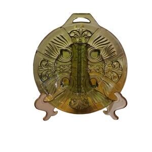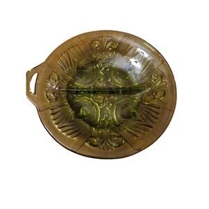 Vintage Indiana Glass Divided Relish Serving Dish Single Cut Out Handle Green