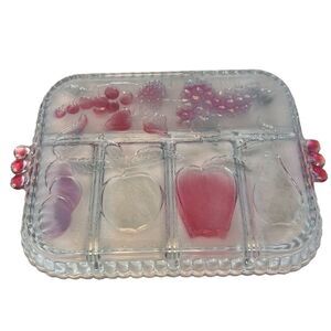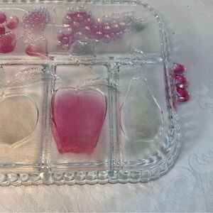 *Beautiful Indiana glass 5 slot divided serving tray with colorful fruit design. Makes a great small relish tray.
