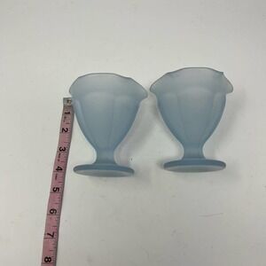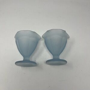 Vintage Indiana Glass Frosted Blue Sundae Dishes Tulip Glasses Set of 2