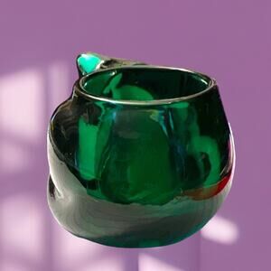 Gorgeous early 90’s green Indiana Glass kitty cat votive candle holder.