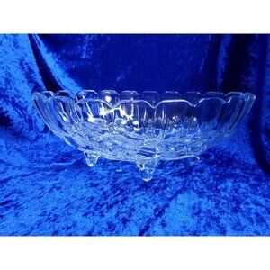 Vintage 1960s Indiana Glass Harvest Grape Oval Shaped Footed Glass Serving / Fruit Bowl/ Centerpiece, embossed , Scalloped Edge, heavy glass, a lovely addition to any Holiday or family gathering , 4.5"H x 12.4"L x 8.5"W (Very thick and heavy), excellent preloved condition no chips or cracks