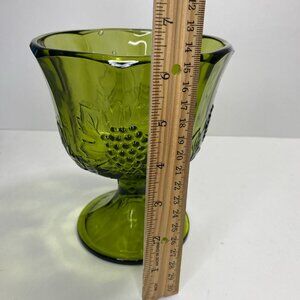 Vintage Indiana Glass Harvest Green Pressed Glass Grape Footed Candy & Compote