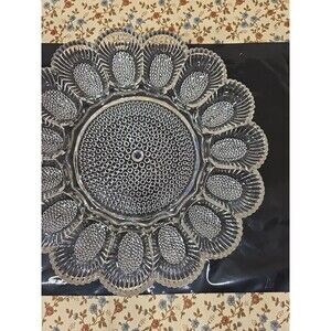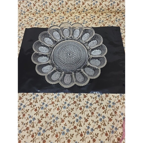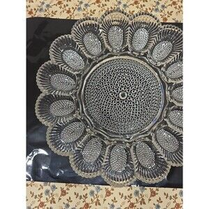 Vintage Indiana Glass Hobnail Deviled Egg Oyster Platter Clear Glass 15 Eggs 11”