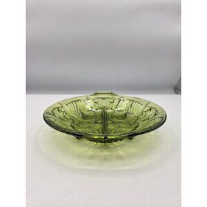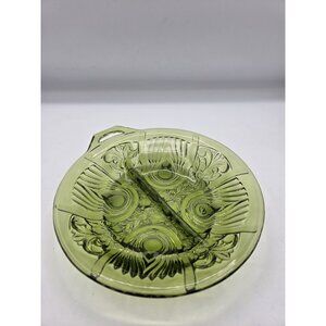 Vintage Indiana Glass Killarney Avocado Green 8" Divided Relish Dish Handle