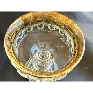 Vintage Indiana Glass Kings Crown Gold Rim Thumbprint Compote Serveware Dish