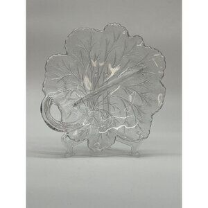 This Unbranded Vintage Indiana Glass Pebble Leaf Serving Relish Dish features a captivating Tree of Life design. With its clear hue, this 8.5" dish adds a touch of class and vintage charm to any table setting.
