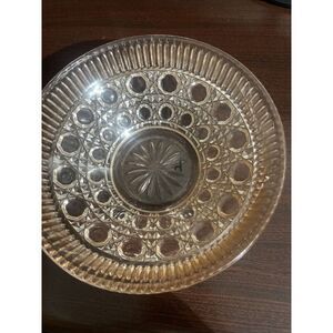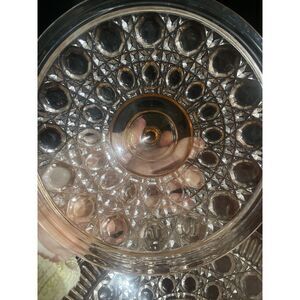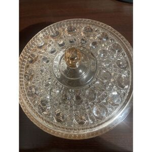 Vintage Indiana Glass Pink Windsor Button and Cane Pattern Covered Candy Dish