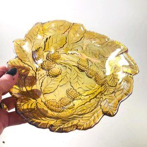 Vintage Indiana Loganberry Carnival Glass Bowl Marigold Amber Leaves Candy Dish